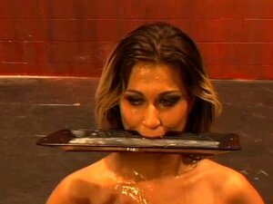 Large butt SADOMASOCHISM serf, nineteen yo Lexi Grey, crawls with cum on her face to the playground for an booty caning