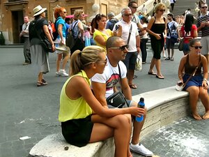 Sexy brunette milf Talia's boobs falling out of her shirt! wow downblouse 2