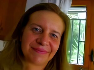 Milf Indulges in Selfpleasure. Milf in white gown gets horny in the kitchen, stimulates herself with a water jet to masturbate with a vibe pitching in